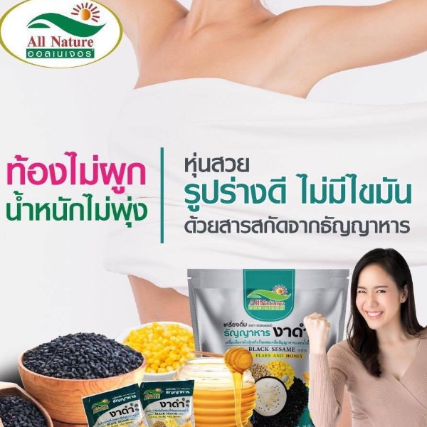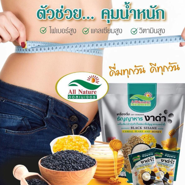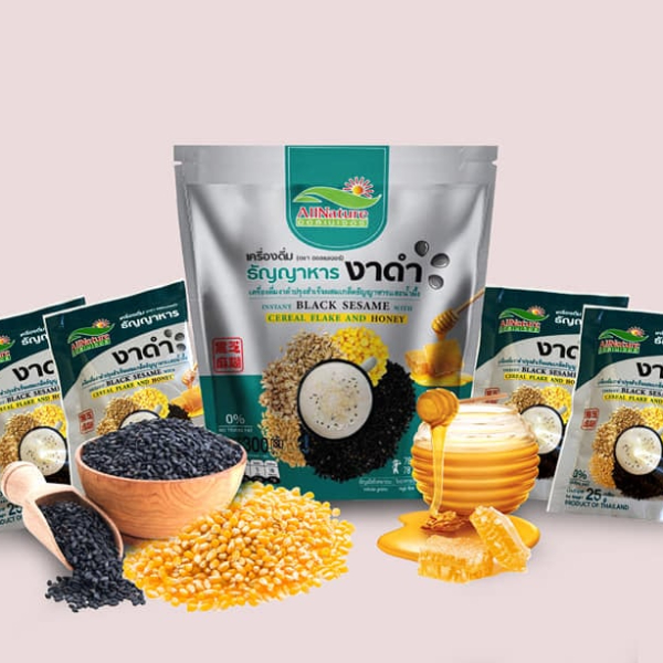 - ผลิตจากงาดำคุณภาพสูง ผสมธัญพืชเกล็ดและน้ำผึ้ง