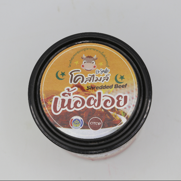 เนื้อฝอย ตรา โคสไมล์ ผลิตโดย วิสาหกิจชุมชนกลุ่มอาหารแปรรูปอาหารฮาลาลเนื้อสัตว์เพชรบุรี ที่มีความเชียวชาญในเรื่องการแปรรูปเนื้อ และเป็นเนื้อปลอดสาร เนื่องจากเป็นวัวที่เลี้ยงโดยเกษตรกรเอง โรงเชือดได้รับมาตราฐาน