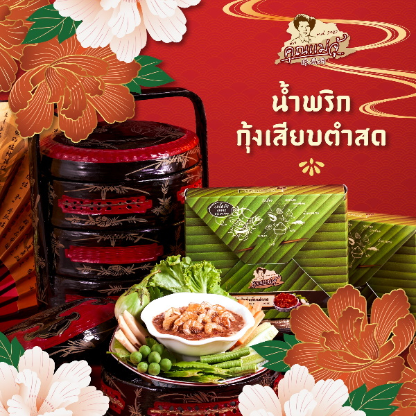 สินค้าประกอบด้วย : น้ำพริกกุ้งเสียบตำสด แบบกล่อง 150 กรัม