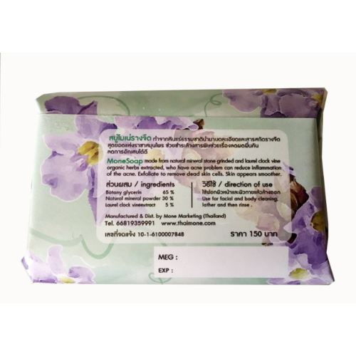 สินค้าประกอบด้วย สบู่หินแร่สูตรว่านรางจืด 120 กรัม. (ลดผดผื่นคัน)