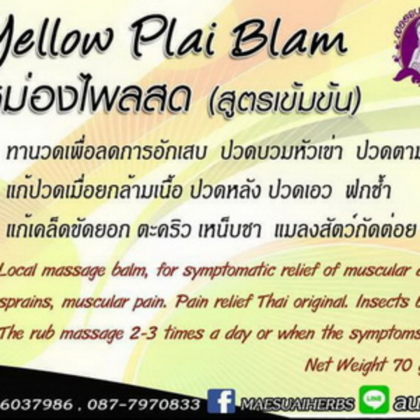 สินค้าประกอบด้วย : ยาหม่องไพลสด Herbal Yellow balm ขนาด 70 กรัม