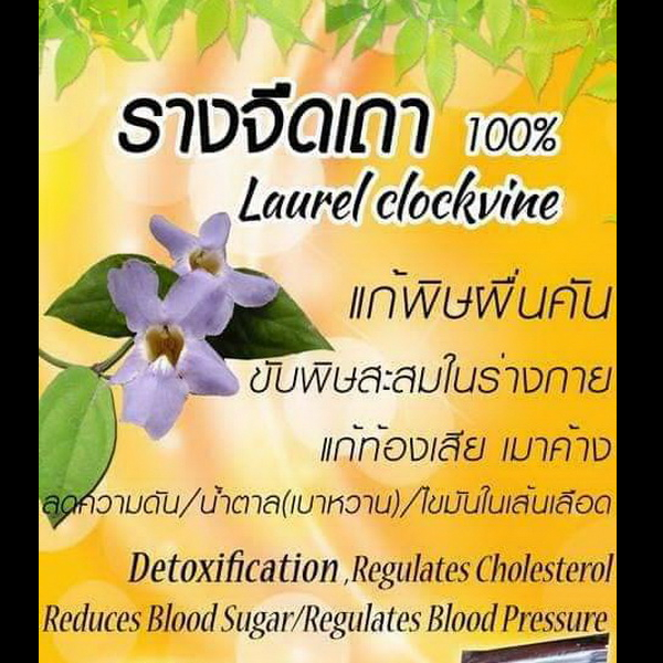 ผลิตจากเถารางจืดแท้100% มีสรรพคุณล้างสารพิษ พิษแมลง เคมี ผื่นคัน ภูมิแพ้ ลดความดัน ไขมัน เบาหวาน แก้เมาค้าง แก้ท้องเสีย