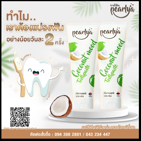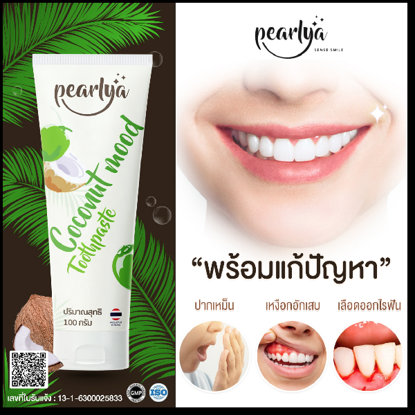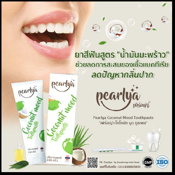 PRODUCT OF THAILAND ยาสีฟัน เพิร์ลญ่า โคโคนัท มูด ทูธเพส สัมผัสแห่งรอยยิ้ม หลอดละ 100 กรัม