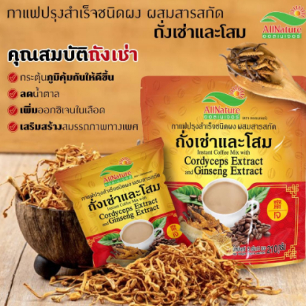 กาแฟปรุงสำเร็จ ชนิดผงผสมสารสกัด ถั่งเช่าและโสม