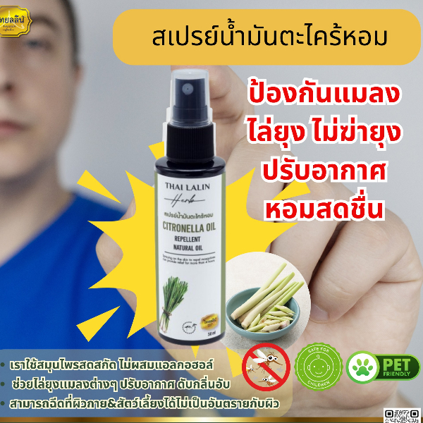 สเปรย์น้ำมัน ตะไคร้หอม ไทยลลิน 50 ml.