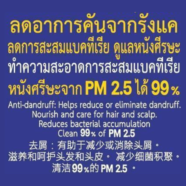 ลดอาการคันจากรังแค ลดการสะสมแบคทีเรีย ดูแลหนังศีรษะ ทําความสะอาดการสะสมแบคทีเรีย หนังศรีษะจาก PM 2.5 ได้ 99%