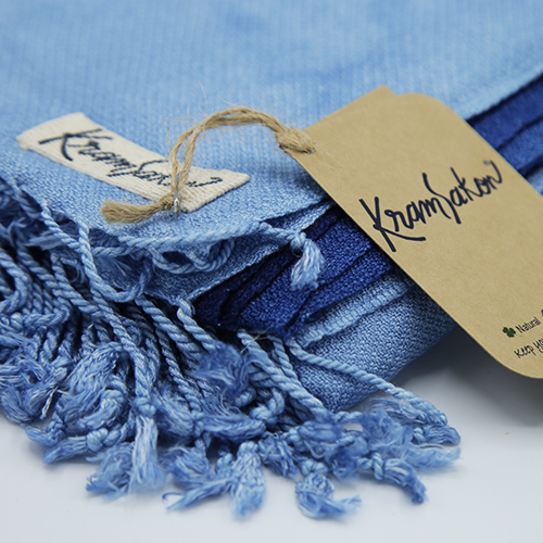 · ผ้าพันคอ เรยอน ผลิตจากเส้นใยธรรมชาติ สร้างสรรค์ลวดลายที่งดงาม ย้อมครามธรรมชาติ และย้อมเปลือกไม้ธรรมชาติ ให้สีครามธรรมชาติเป็นตัวแทนของความห่วงใยจากคุณถึงคนที่คุณรัก