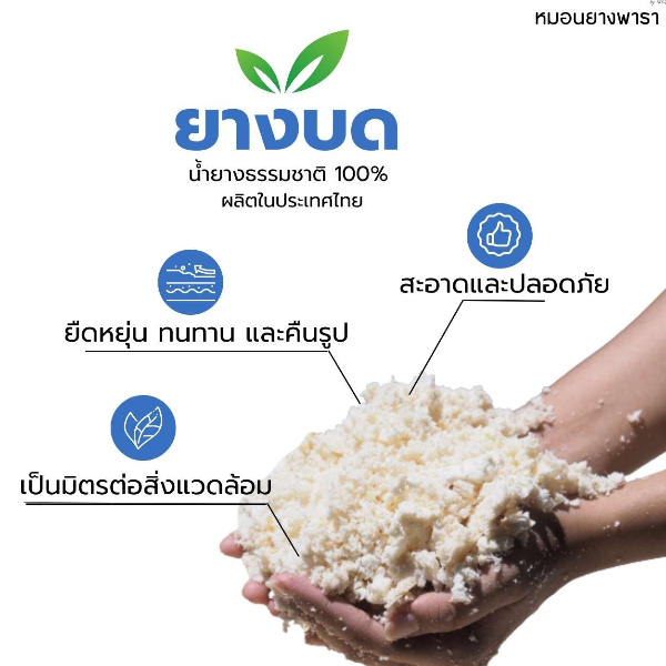 หมอนเหมาะสำหรับผู้ที่เป็นโรคภูมิแพ้ เพราะยางพาราช่วยป้องกันเชื้อแบคทีเรียและเชื้อรา การใช้ latex foam บดละเอียดเป็นใส้หมอนแทนนุ่น ช่วยให้ถ่ายเทอากาศได้ดี ให้ความรู้สึกเย็นสบาย สัมผัสนุ่ม ปรับระดับการรองคอให้สูง/ต่ำตามสรีระของการนอนได้ง่าย จึงไม่ทำให้ปวดเมื่อยบริเวณท้ายทอย
