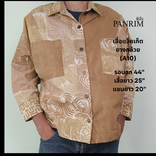 ผ้าบาติกสียางกล้วย จากกลุ่มกะลามะพร้าวและบาติกยางกล้วย บ้านหน้าถ้ำ ต.ปาดังเบซาร์ อ.สะเดา จ.สงขลา