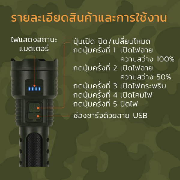 ไฟฉาย FLASHLIGHT รุ่น TROOPER จากแลมป์ตั้น ไฟฉาย 2 in 1 ท ี่สามารถเป็นได้ทั้งไฟฉาย และโคมไฟที่ปรับความสว่างได้ 2 ระดับ สามารถชาร์จด้วยสายUSB พร้อม LED บอกสถานะการชาร์จแบตเตอรี่ และสามารถยึดด้วยแม่เหล็กได้ใช้งานสะดวก พกพาง่าย เหมาะกับการใช้งานทั่วไปหรือพกพาไปแคมป์ปิ้ง